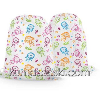 Büzgülü sırt çantalarında kullandığımız baskı, çıkmayan solmayan insan sağlığına zarar vermeyen eko-teks belgeli baskı kullanılmaktadır.